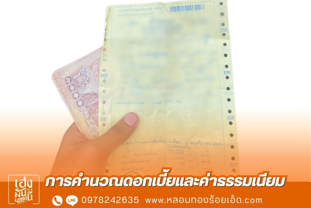 ตัวอย่างเช่น เงินต้น: 5,000 บาท จำนำ 1 เดือนแต่ชำระช้าไป 5 วัน การคำนวณจะเป็น 1.5 เดือน